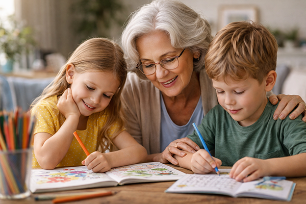 Gerade beim Malen, Rätseln oder gemeinsamen Überlegen entstehen oft die schönsten Gespräche zwischen Großeltern und Enkeln.